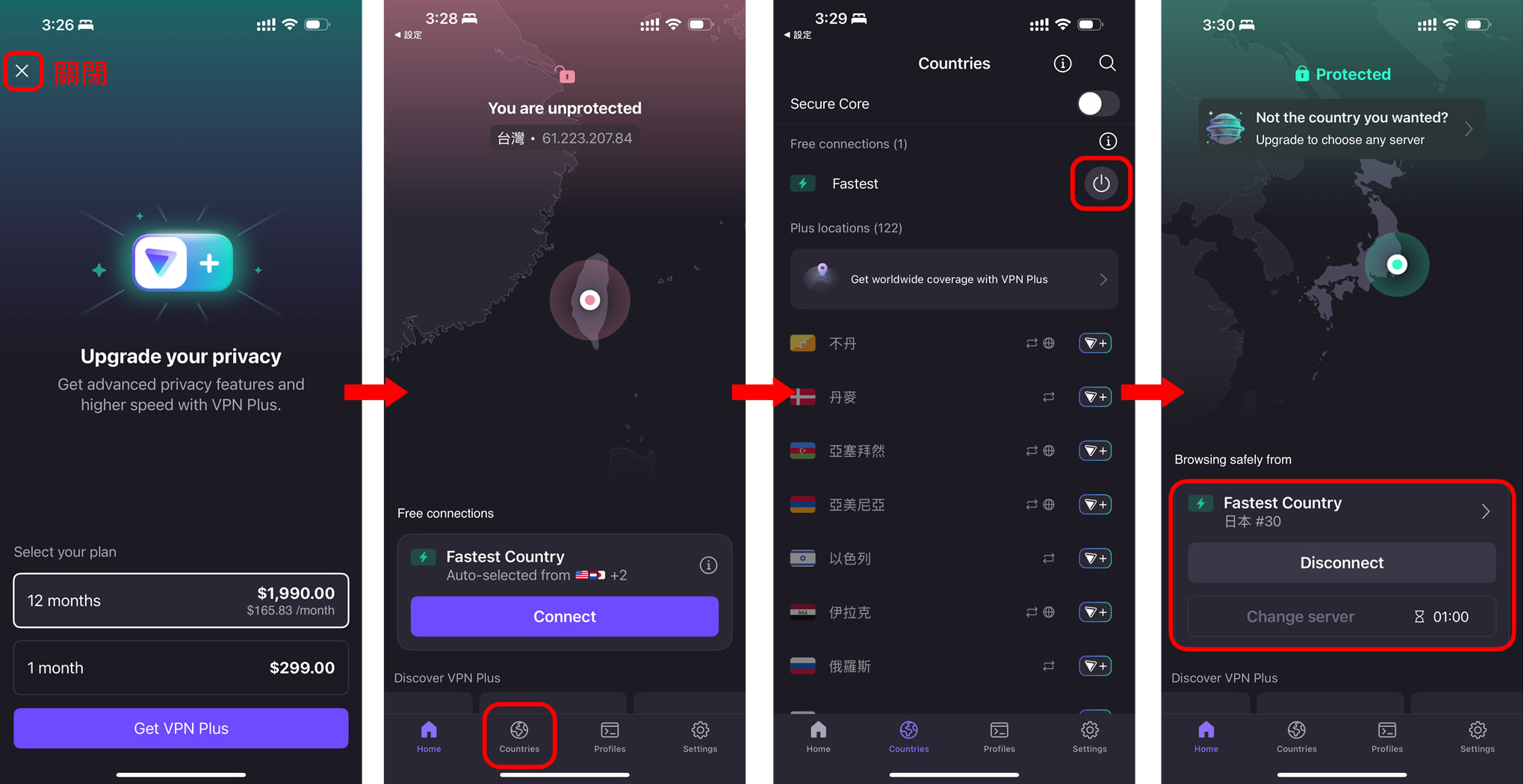 登入後,選擇免費方案,然後選擇想要模擬的國家地區(如:日本)